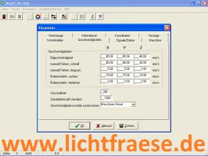 Hier eine Übersicht meiner Parameter Einstellungen unter WinPC-NC.